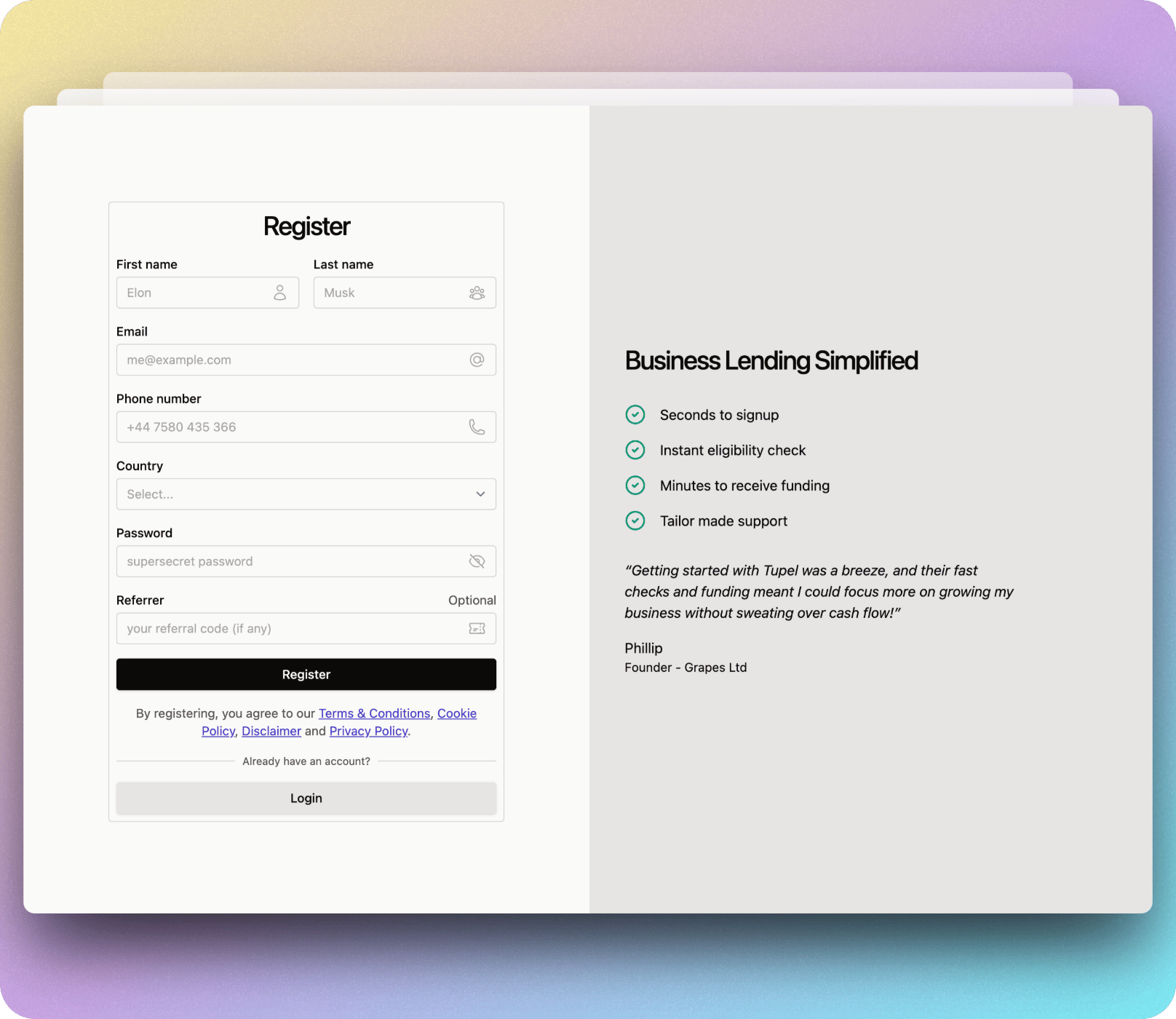 Share your custom link (tupel.com/@yourcode) so that even if your referral forgets to enter the code at signup, it is applied automatically via a 30-day cookie. - Views: