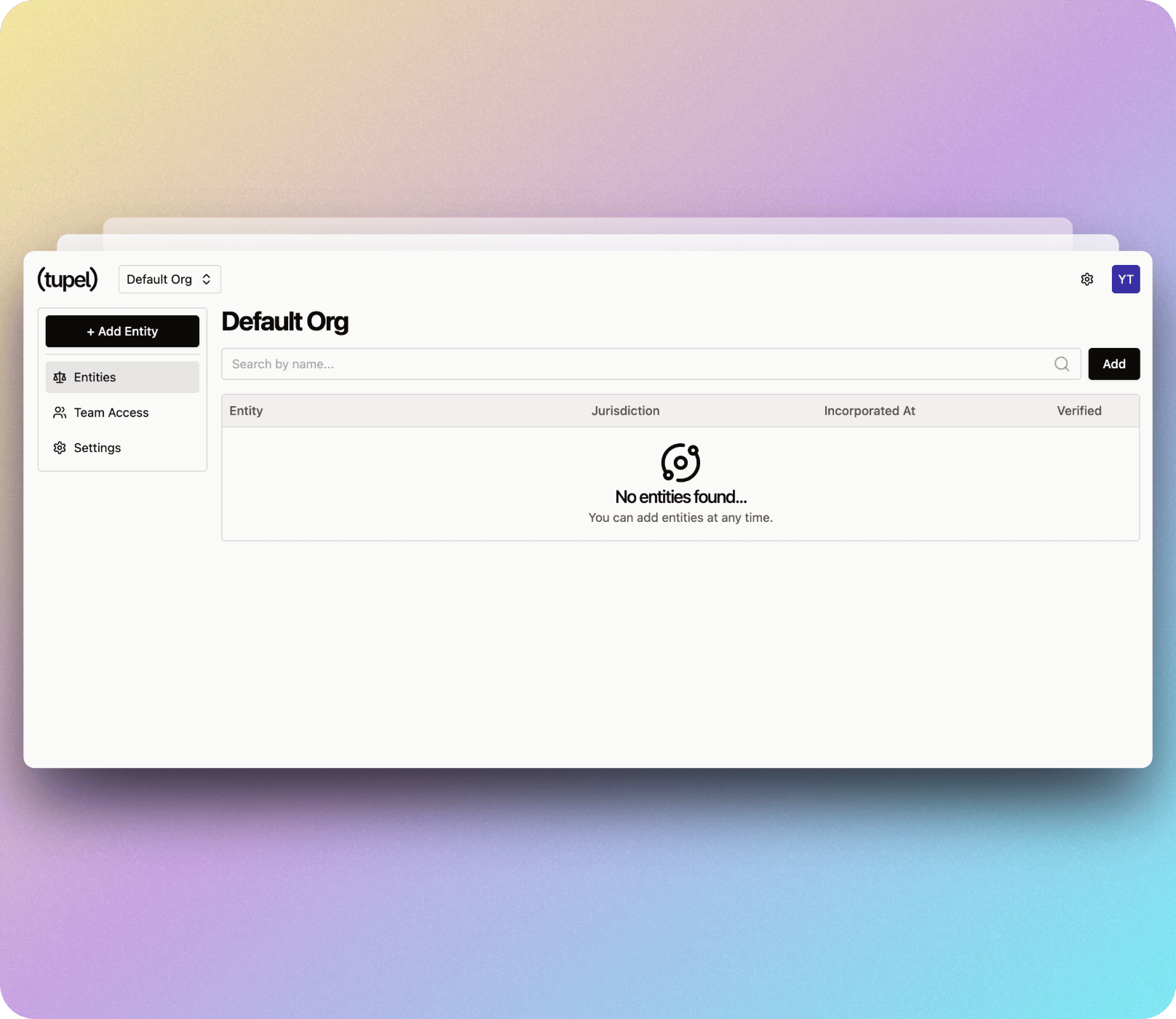 | Owner | Full access to all organization settings, entities, and team management |